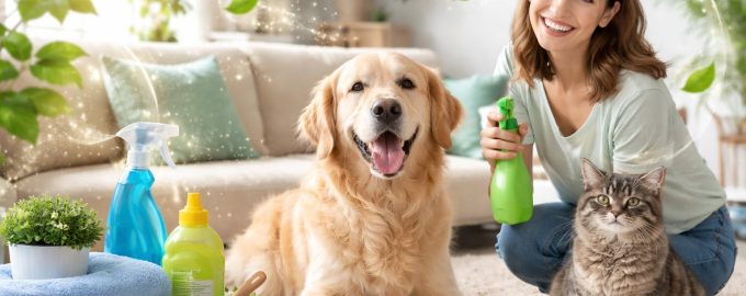 Renhold i et hus med kjæledyr opprettholdes gjennom en systematisk tilnærming og bruk av produkter som bryter ned organiske forbindelser.