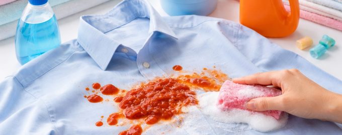 - Tomatsauser (ketchup, ajika) inneholder lykopen, som er redd for sollys og hydrogenperoksid. Etter skylling med kaldt vann, påfør en blanding av natron og vann på flekken.
